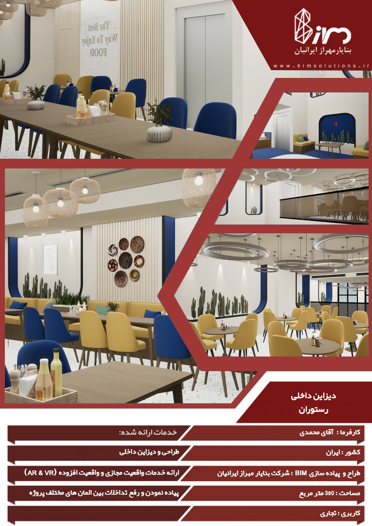 پروژه طراحی داخلی رستوران بلوار نیایش