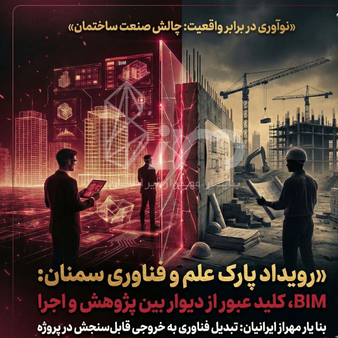 همرسانی صنعت و فناوری در سمنان: نقش کلیدی مشاورین BIM در پر کردن شکاف فناوری و صنعت ساخت کشور اخبار 13 آذر 1404 0 نظرات 102 بازدید نخستین همایش ملی نوآفرینی دیجیتال در حوزه عمران، معماری و شهرسازی (CIARAi) - اخبار 08 آذر 1404 0 نظرات 167 بازدید ابلاغ رسمی ویرایش پنجم مبحث ۱۹ مقررات ملی ساختمان اخبار 22 آبان 1404 ادامه مطلب... 0 نظرات 323 بازدید پنل سخنرانی در نوزدهمین نمایشگاه صنعت ساختمان استان قم اخبار 21 آبان 1404 0 نظرات 310 بازدید روز ملی کیفیت - باشگاه تلاشگران ارزش آفرین کشور اخبار 17 آبان 1402 0 نظرات 32053 بازدید درخشش بنا یار مهراز ایرانیان در پنجمین کنفرانس بین المللی مدلسازی اطلاعات ساخت ایران - اخبار 25 خرداد 1402 0 نظرات 20796 بازدید پنجمین کنفرانس مدلسازی اطلاعات ساخت BIM - خرداد 1402 اخبار 03 خرداد 1402 0 نظرات 7779 بازدید سمینار BIM در ساخت و سازهای شهری ویژه کانون مهندسین بابلسر - اخبار 12 بهمن 1401 0 نظرات 8050 بازدید بیست و سومین نمایشگاه هفته پژوهش، فناوری و فن بازار استان قم اخبار 28 آذر 1401 0 نظرات 8533 بازدید سمینار فناوری مدلسازی اطلاعات ساخت (BIM) در سازمان نظام مهندسی استان کرمان اخبار 09 مهر 1401 0 نظرات 8524 بازدید پنل سخنرانی پیرامون «مدلسازی اطلاعات ساخت (BIM) و مزایای آن در کنترل هوشمند نقشه ها و ضوابط» اخبار 23 مرداد 1401 0 نظرات 9377 بازدید پنل میزگرد پیرامون BIM در پنجمین همایش و نمایشگاه بین المللی آتش نشانی و ایمنی شهری اخبار 18 تیر 1401 0 نظرات 10070 بازدید بنا یار مهراز ایرانیان، حامی اولین کنفرانس بین المللی ساختمان های برند - برج میلاد تهران-1401 اخبار 29 خرداد 1401 0 نظرات 9681 بازدید دنیای اقتصاد: دانش بنیانهای عرصه ساخت و ساز نیازمند حمایت معنوی اخبار 12 خرداد 1401 0 نظرات 23630 بازدید سمینار BIM در ساخت و سازهای شهری ویژه انجمن سازندگان مسکن و سازندگان استان قم- اخبار 05 خرداد 1401 0 نظرات 10333 بازدید 123456بعدی خانه خدمات مدلسازی اطلاعات ساخت(BIM) پیاده سازی BIM در پروژه های در حال ساخت مدلسازی هوشمند با مفهوم BIM معماری (Architecture) سازه (Structure) برق و مکانیک (MEP) راه - باند - ریل - بندر تهیه مدلهای "چون ساخت" - لیزر اسکن"Laser Scan" پیدا کردن تداخلات (Clash detection) متره و برآورد (Quantity Take -ff) ساخت "فمیلی(Family)" چهار بعدی (4D) و پنج بعدی (5D) بعد ششم(6D) بعد هفتم (7D) پلاگین ها و نرم افزارهای سفارشی مدیریت پروژه نوین و فناورانه واقعیت مجازی(VR) و واقعیت افزوده(AR) شبیه سازی و بهینه سازی انرژی در پروژه ها شبیه سازی فرآیندهای عمرانی،صنعتی،معدنی مدیریت بنادر اسکن لیزری (3D Laser Scan) آموزش پیاده سازی موضوعات فناورانه در ارگانها/سازمانها/شرکتها پیاده سازی BIM و موضوعات فناورانه در ساختار سازمانی فرم درخواست بررسی آموزش آموزش گروهی آموزش خصوصی ویدئو گالری تحقیق و توسعه کتابخانه مراجع و مقالات اخبار مقالات و نوشتار های تحلیلی سمینارها، همایش ها، وورکشاپ ها و ... اسناد و آئین نامه های و دستورالعمل های ایران دستورالعمل پیاده سازی BIM-سازمان برنامه انتشارات فروش بسته های آموزشی فروشگاه کتاب پروژه ها پروژه های اداری, تجاری و آموزشی صنعتی (نفت - گاز - پتروشیمی - معدنی - فولاد و ... ) پروژه های مسکونی پروژه های طراحی داخلی پروژه های درمانی پروژه های زیر ساختی (ریلی و مترو، راه و باند، فرودگاه، آب و فاضلاب و ...) پروژه های سنتی، بقا متبرکه، حرم های مطهر، مساجد پروژهای پیاده سازی BIM در ساختار سازمان ها، ارگان ها و شرکت ها پروژه های خارج از کشور نمونه تور مجازی - بنا یار مهراز ایرانیان تور واقعیت مجازی - نهضت ملی مسکن - فرنیا درباره ما درباره ما بیشتر بدانید تماس با مارزومه سعید خلیلی مسلم شیخ خوشکار محمد خراسانی نادر جمالی فرم ورود ثبت نام مرا بخاطر داشته باش ورود ایجاد حساب کاربری بازیابی نام کاربری بازیابی رمز عبور Search
